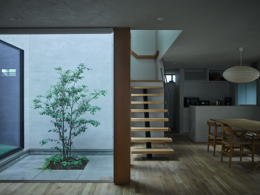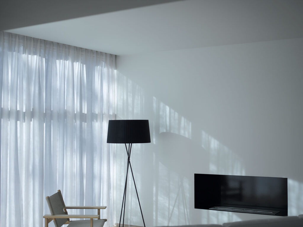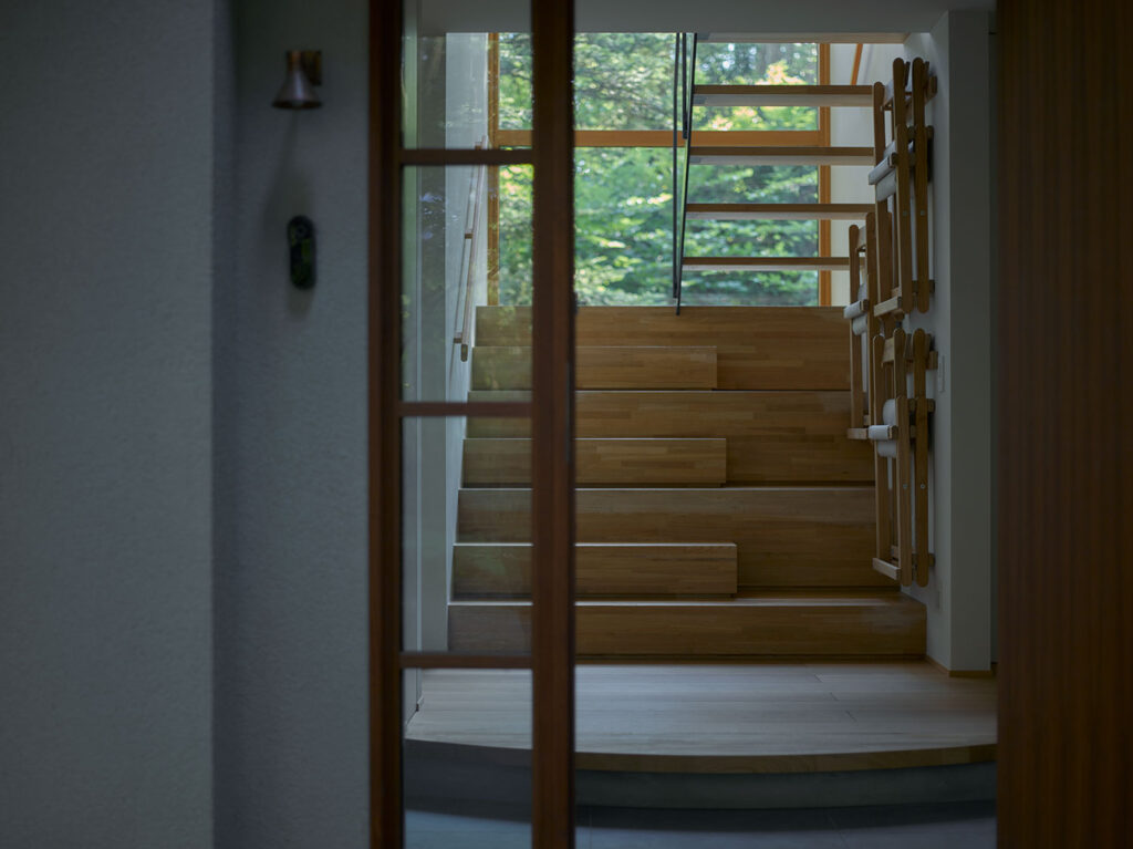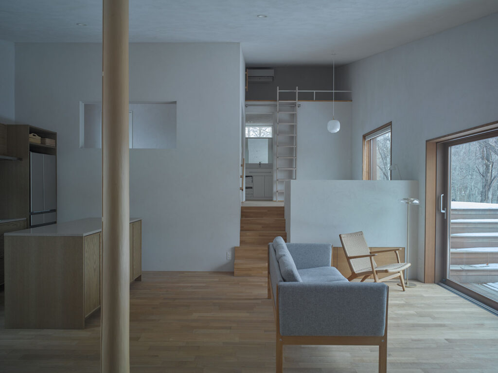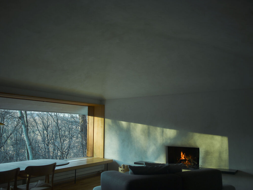 解放された方向と、季節の移ろいを感じさせる壁と窓の対比が室内の居心地の良さを決めます。